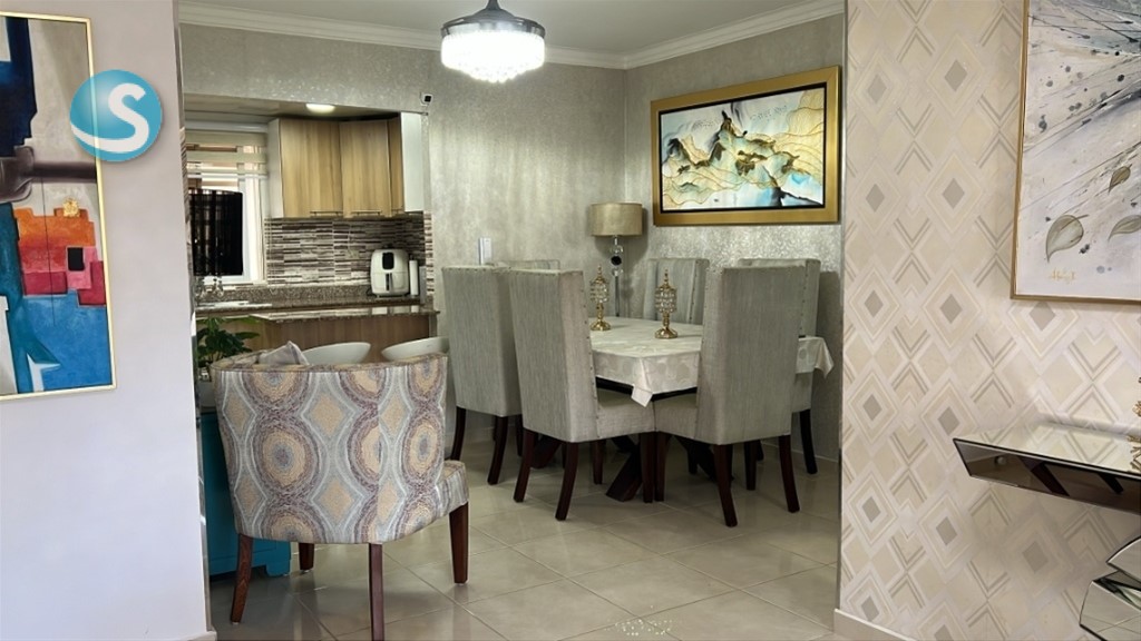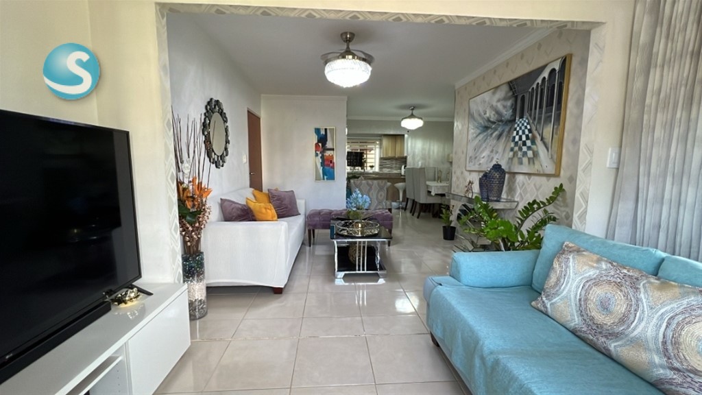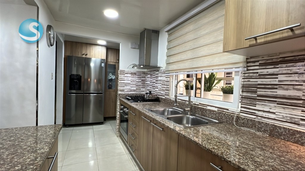 Sala Balcón amplio, Comedor, Cocina, Desayunador, Cuarto de Estudio con Opción para Habitación con Aire Acond., 2 Habitaciones, Principal con Walk in Closet, Baño y Aire Acond, 2 Baños , 2 Parqueos, Area de Lavado, Calentador a Gas, Inversor, Escalera de Emergencia, Entre Otras Comodidades